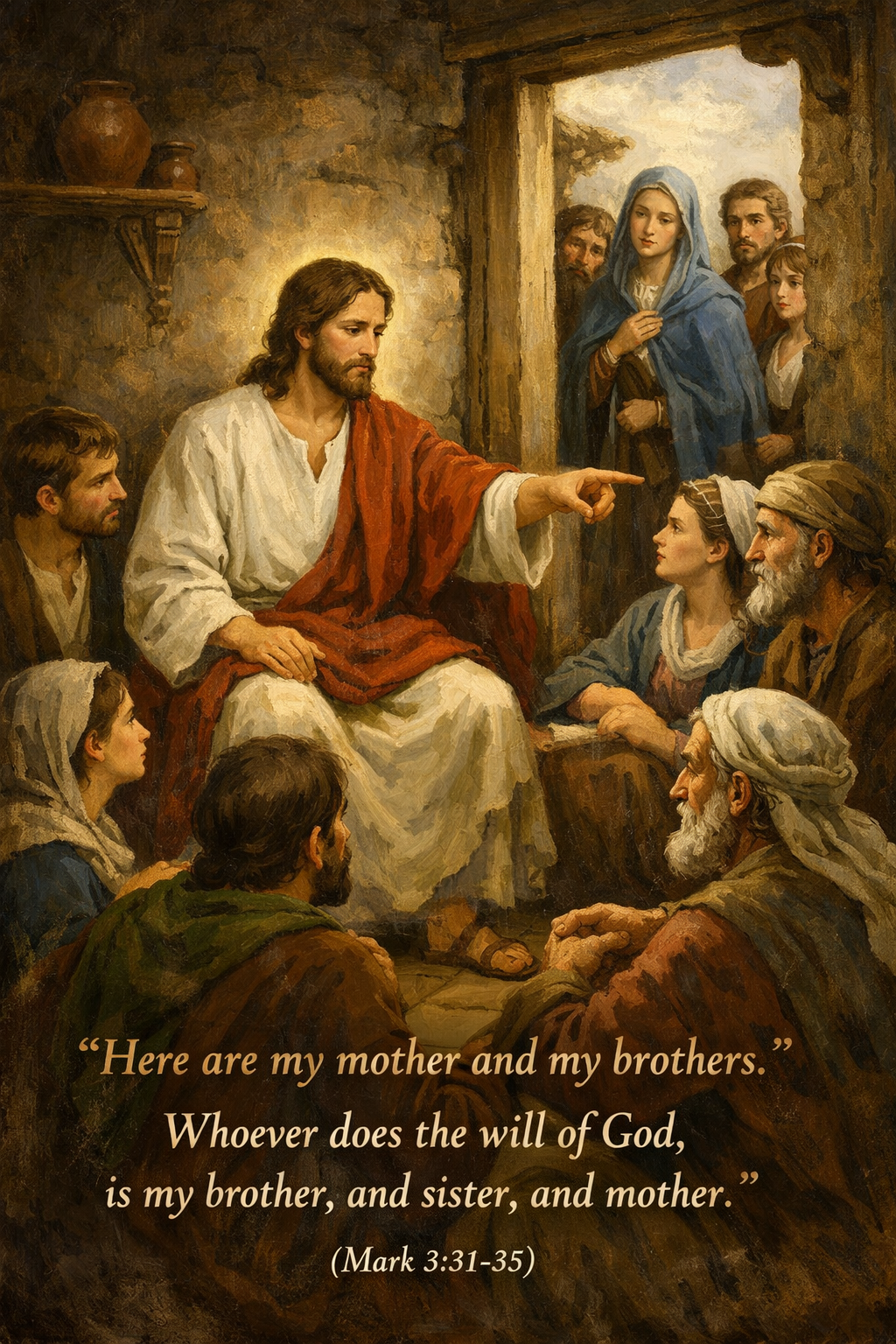 예수님의 어머니와 형제들이 찾아옵니다.